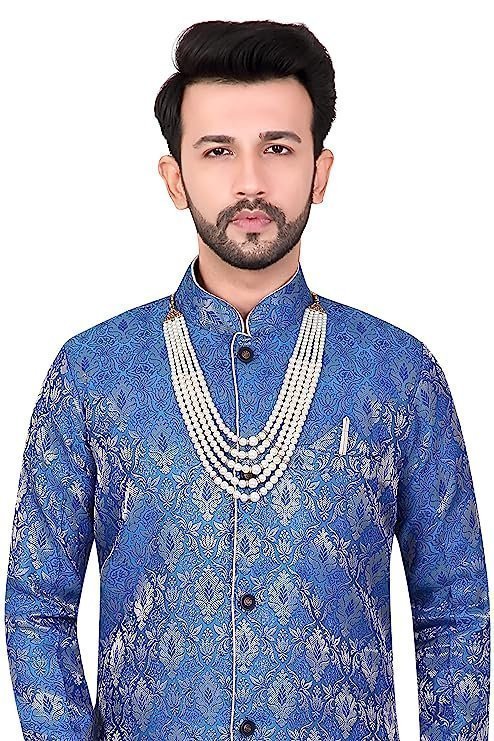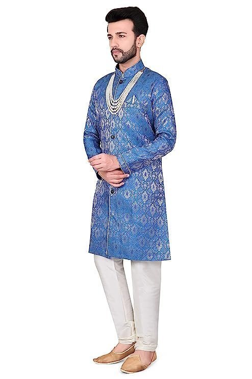 Mens Ethnic Wear Blue Kurta Pajama Sherwani Set